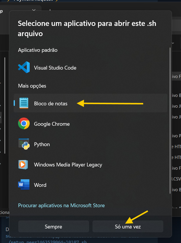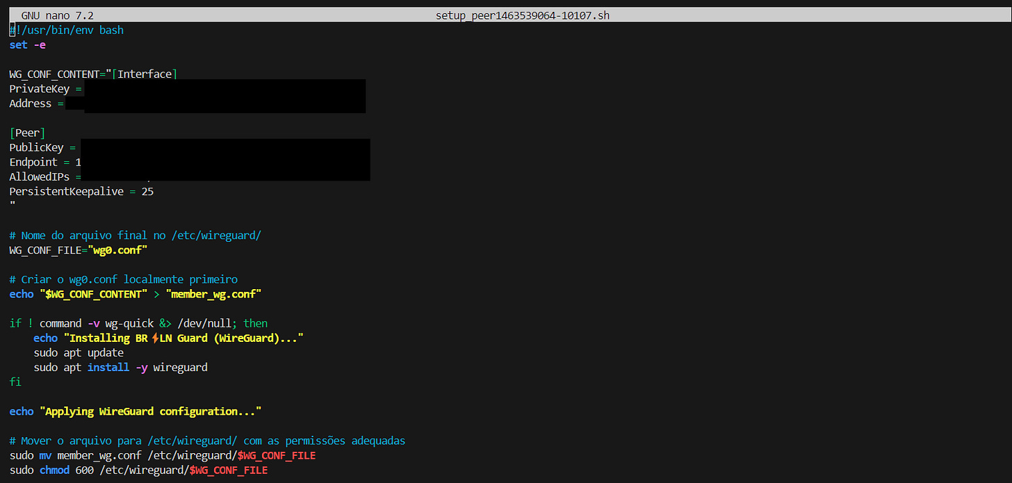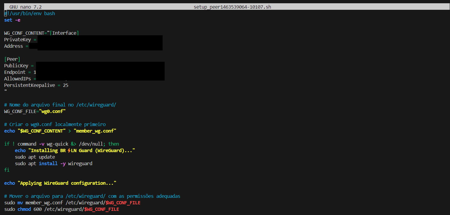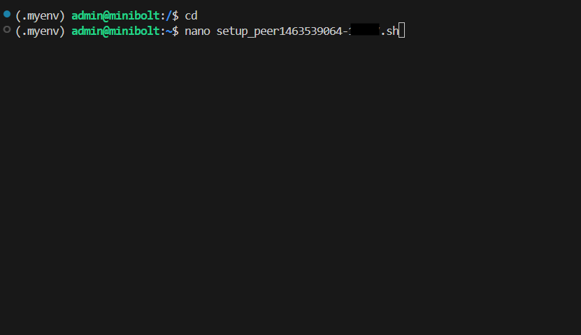 cdnano setup_peer<nome_do-arquivo>.shAgora abra o arquivo com o notepad ou qualquer outro editor de texto do seu sistema e copie o conteúdo do arquivo para o arquivo recém criado no terminal: