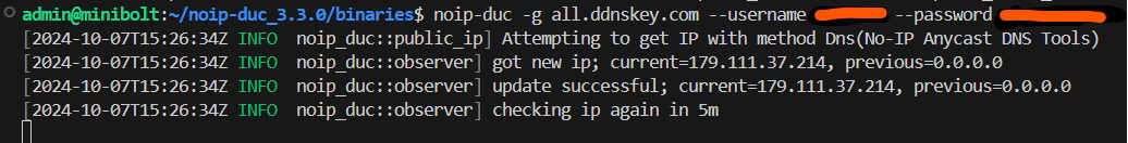 noip-duc -g all.ddnskey.com --username <DDNS Key Username> --password <DDNS Key Password>*estas informações você encontra no site da no-ip.