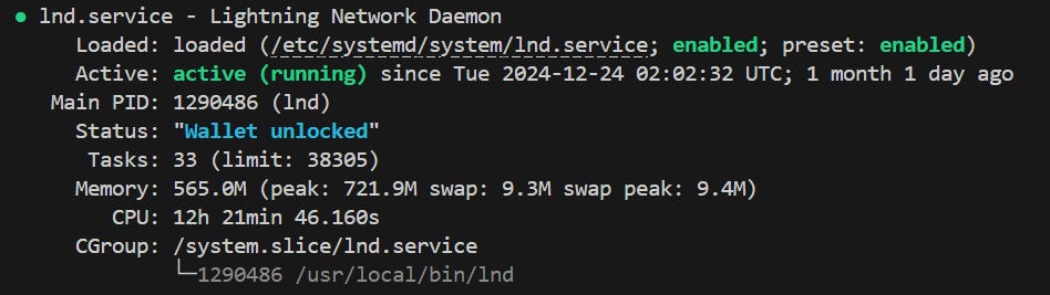 sudo systemctl enable lndsudo systemctl start lndPara verificar o funcionamento faça: