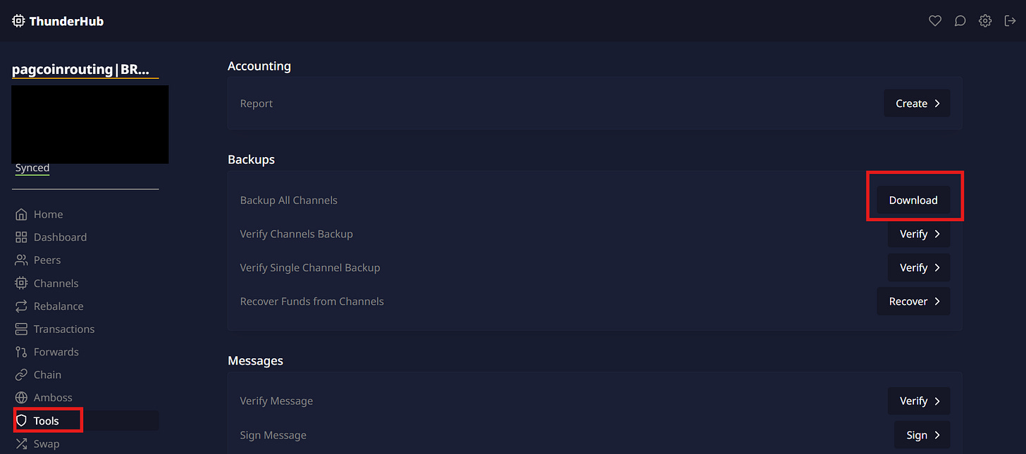 ATENÇÃO!!! - Antes de começar este processo sempre tenha certeza que tem a frase de 24 palavras correta para recuperar a sua secret key e que tenha o ultimo Static Channel Backup (SCB), fornecido facilmente pelo bos telegram (Ou outra ferramenta de sua preferência como lncli ou o Thunderhub). Assim, permitindo a recuperação dos seus fundos de forma mais tranquila caso você cometa algum erro.
